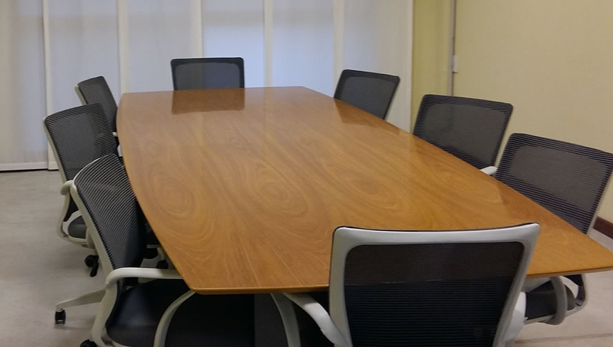 Materiales: Tabiques de construcción en seco, vidrio, madera y cielorraso con placas acústicas.